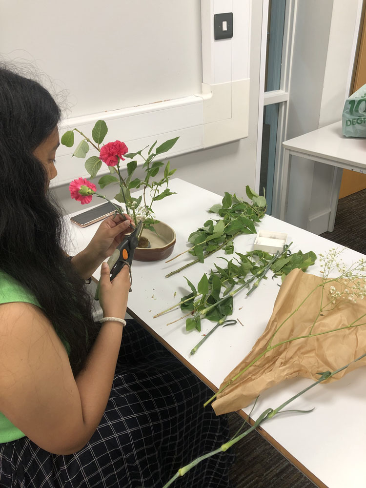 Ikebana (Japanese Flower Arranging) club is a delightful experience in which a group of year 12 students arranged and displayed a variety of flowers and foliage in creative and satisfying ways.