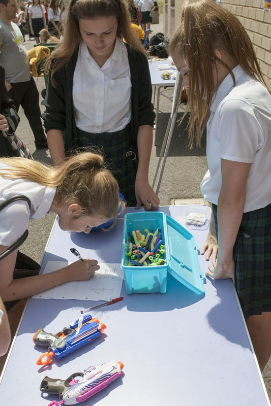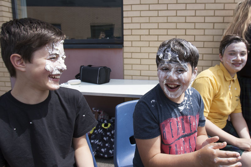 7H ran a "Nerf Gun" shooting gallery where the aim was to score the most points firing little foam "bullets" at targets. 8H provided willing victims along with "ammunition" in the form of cream pies. People paid for the privilege of splatting a pie in the face of a victim.