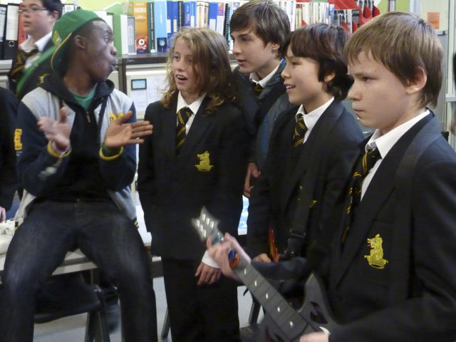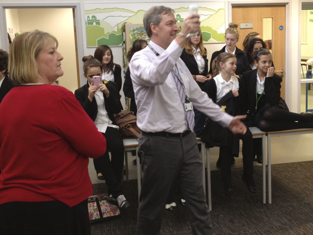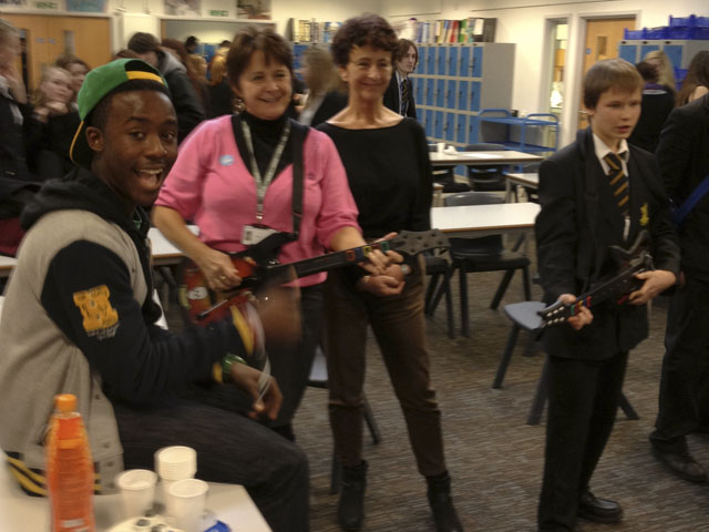 A variety of events took place. We had a bake sale where many outstanding Delphi pâtissiers showed off their cake baking skills. This was a very popular stall and they sold almost half of their cakes in the first 10 minutes. There were also two computer game events that took place; Wii Tennis, where Mr Pullen and Mrs Stivarius demonstrated their skills on the court, and Guitar Hero, where Nikita Logonov (9B) and Mrs Snaydon played a duet of Bohemian Rhapsody.