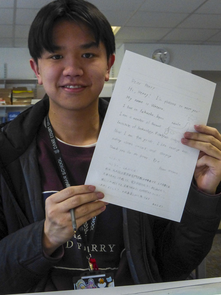 Harry Barham and Bradley Cooke said “The Japanese pen pal experience was a lot of fun, and we all enjoyed it very much. We, through this experience have greatly increased our Japanese writing skills. We all feel as though we have made friends through this experience, as lots of us had a lot in common with our pen pals”.