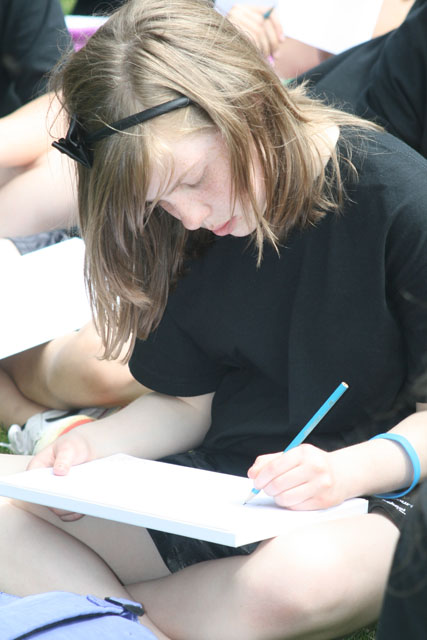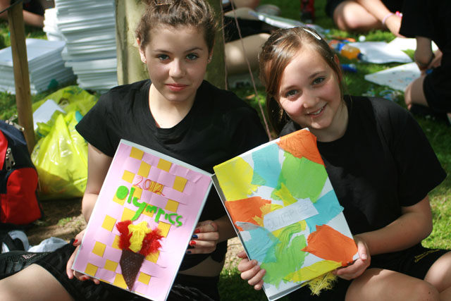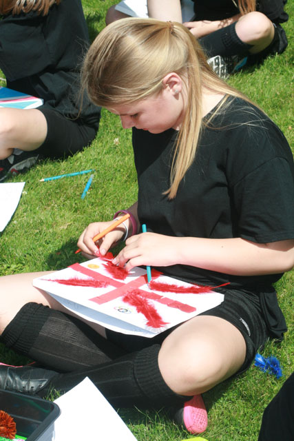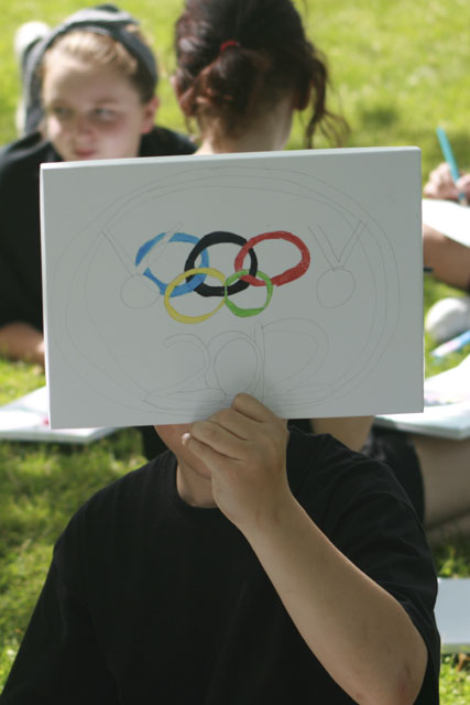 At lunchtime, wearing black tee-shirts, we helped to form one of the Olympic Rings for the attempted world record for the greatest number of people singing the Olympic song composed by R Dickinson from St Peter's Primary school (we await confirmation that the record was broken).