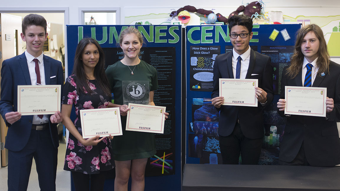 The Fujifilm Science Prize was won by Sabrina Latchman, Ellie Albone, Samuel Barrs, Jordan Potter, Valentine Goesel and Alice Price for the research project “An investigation into the chemical reaction behind glowing synthetics and bioluminescence.”