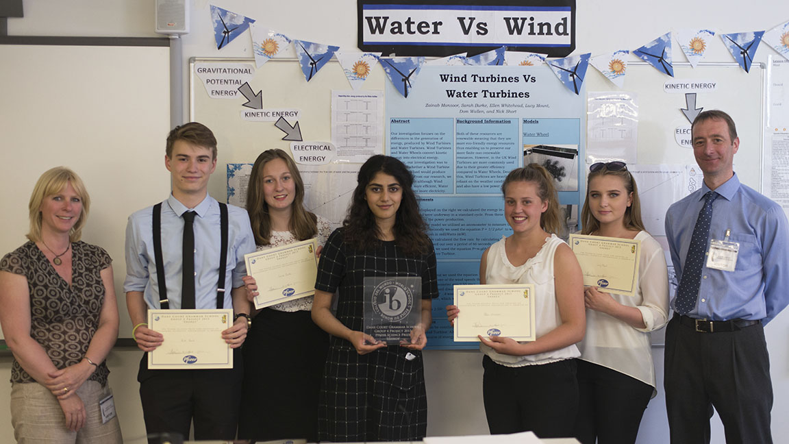 The Pfizer Science Prize was won by Ellen Whitehead, Zainab Mansoor, Sarah Burke, Dom Wallen, Nick Short and Lucy Mount for the research project “A comparison of energy generation from wind and water turbines.”