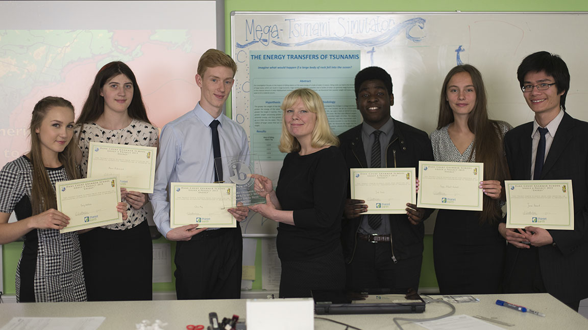 The Thanet Earth Science Prize was won by James Howard, Josh Edeki, Chris May, Maisie Bodemeaid, Emily Watkins, Poppy Attwell-Bushell and Shane Wells for the research project “Energy transfers in tsunamis.”
