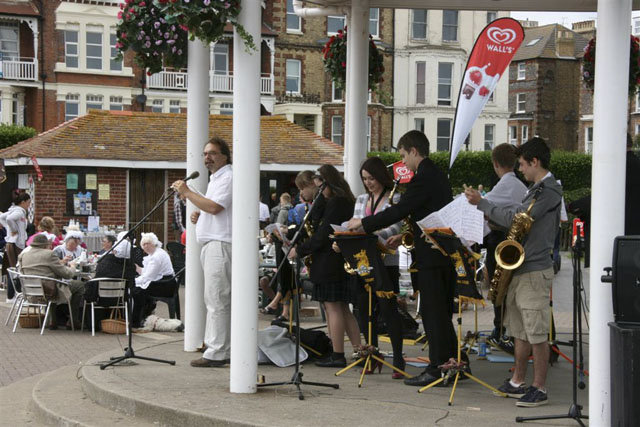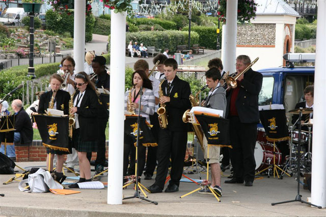 Students from year 7 through to year 13 took the opportunity to perform at the annual Dickens Festival on Broadstairs Bandstand on 21 June 2011. A very windy day, the challenges were not only entertaining the large crowd that had gathered but also keeping the music on the stands! Thanks to Kirsty Higbee, Chloe Louise Gaddes, Robert Evans, Elias Votta, Etienne Avisse Brown, Dominic Bent, Jonathan Ward and Cameron Taylor for jazzin' the afternoon away.