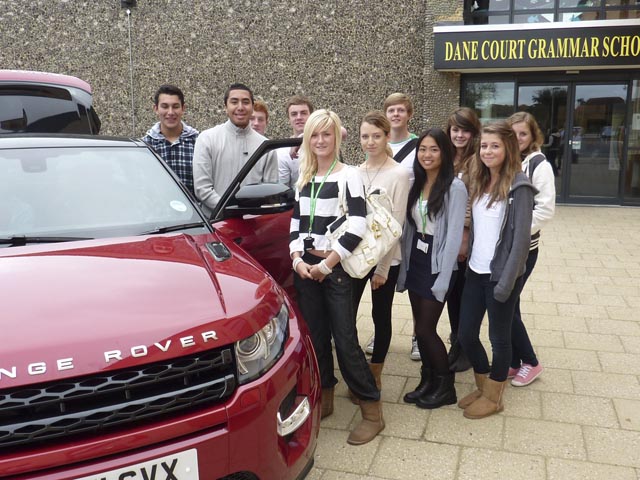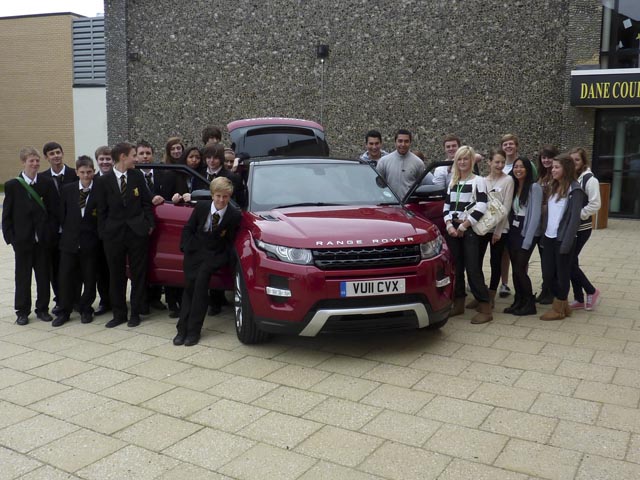On Monday 26 September an ex student from Dane Court came to the school. Sean Henstridge is a designer for Range Rover and works in Warwick and made the journey to Dane Court in the new Range Rover Evoque. Students taking GCSE and AS graphics were involved in a task to design a new aspect of the Range Rover Evoque for the next facelift. Sean gave an introductory speech about how he got into the industry and how the design process of a car works. Students then went out to have a good look round the top of the range car to conduct some research.