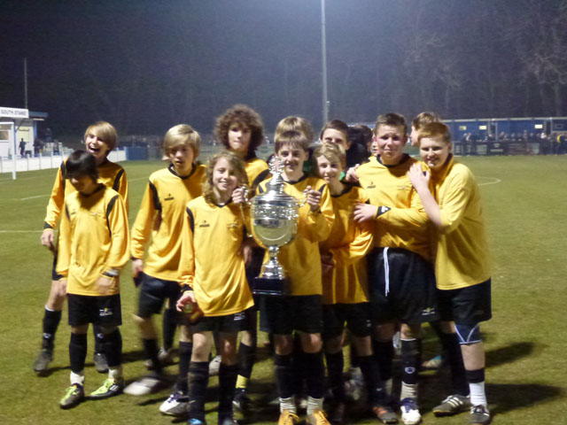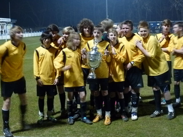 With three minutes to go Mileham's strength and determination, a feature of his play all evening, won a free kick near the corner flag on the right hand side. We only committed four players to the area, guarding against a breakaway if things came to nought. Paxman delivered, what a delivery, pinged into the heart of the six yard box. The ball was met by the head of Alfie Foster whose perfectly timed run brought the reward these skills deserved as the net bulged for the third time. Cue delirium on the touch line, satisfaction on the pitch and the certainty that these boys had done it again; they had retained their Kent title. Fully deserved, fantastically achieved, belief justified. We are fortunate to have witnessed such stamina, doggedness and sublime skill from a group of fine young men who just enjoy playing football but with fierce determination.