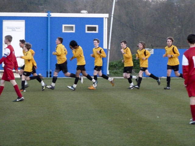 This settled us somewhat and James Mileham, Todd Jordan and Paxman began to pose more problems around the opposition box but resolute defending kept them out. However, five minutes from half time we got sloppy; one throw in beat three defenders and bounced invitingly into our area where the Hurstmere number 8 stood unmarked twelve yards out. His shot to the corner was true and we were all square at the break.