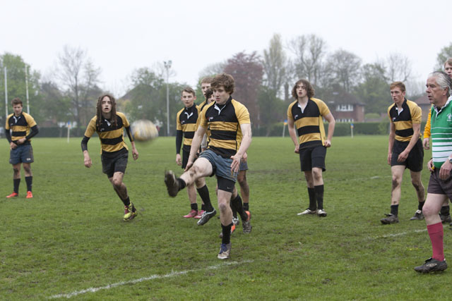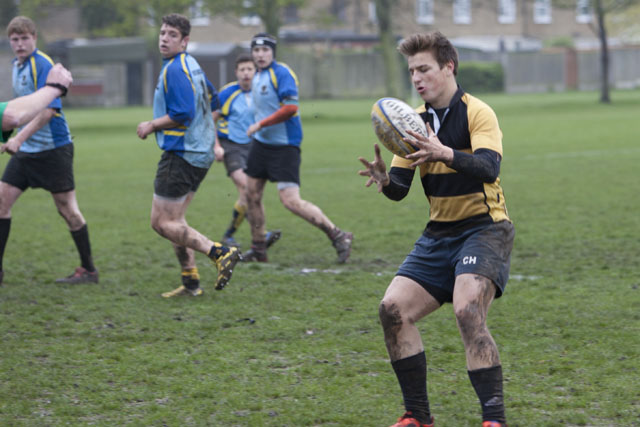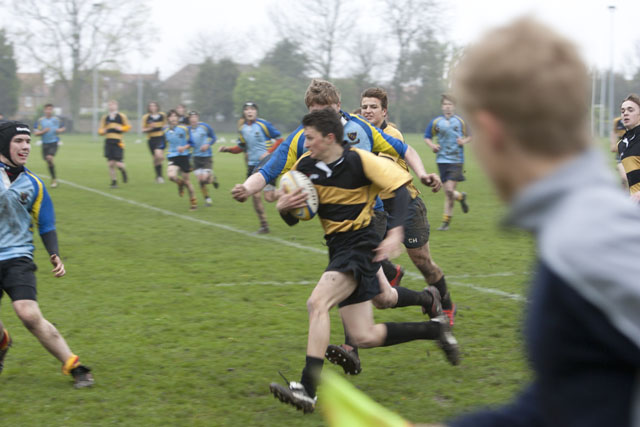 The Ashford boys began with a series of drives, going through the phases but with few passes, however, they were met with dogged defence. An early penalty for offside gave Court's fly half Stuart Harrison the opportunity to take a quick tap. He set off on a sixty metre run to the posts dummying and side stepping with rare panache and showing electric pace. He converted his own try to give a welcome lead and joy to the faithful supporters. The next ten minutes belonged to Knatchbull with more bruising drives and rolling mauls eking the play forwards. They worked their way into the right hand corner where, despite several good tackles, their lock forward plunged over the line for an unconverted try. Would Court wilt? No, back they came with some superb three quarter play to set up a position deep in their visitors twenty two, where a succession of half chances were spurned before Knatchbull snaffled the ball and cleared their lines. Soon afterwards from a turnover on halfway Harrison performed a textbook loop move with Courtney Horey and ran into the space developing as a result. He dummied the winger and drew the fullback who stood his ground and moved into the tackle only for the ball to be offloaded with an improvised basketball pass to the supporting left winger Mason Webb. He was caught near the line but retained possession and grounded the ball for a quality finish. The goal attempt failed but importantly the seven point gap had been reinstated. Although Knatchbull finished the half on the attack the Court defence would not be breached and the half time break gave time to reassert our belief and recharge dwindling energy resources.