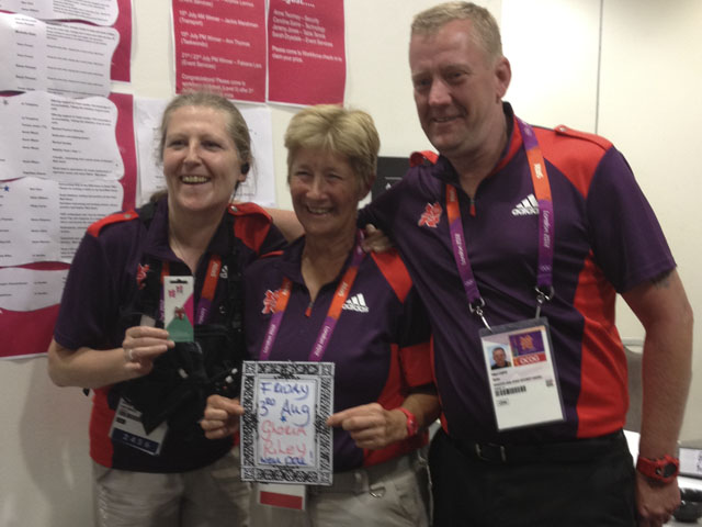 I got wet every day, hardly ever had lunch, stood for ten hours at a time, regretted my limited language skills but would not have swapped the experience for anything. On Friday 3 August I was nominated 'star' volunteer for the ExCel and drove home with a great big smile on my face. The two weeks went by in a flash. Each team I worked with were brilliant and gave of their time with enthusiasm and energy. As I sit here writing this and with the closing ceremony just hours away I wonder 'What shall I do next week?'
