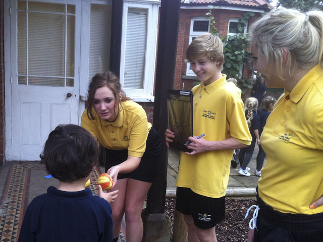 On Wednesday the Dane Court Sports Leaders were in action for the first time this year! We have twenty one Sports Leaders in Year Ten and they all went to Haddon Dene Primary School on Tuesday afternoon to run a multiskills festival for forty year three and four students. The primary school students were split into seven different teams and had the chance to compete in seven different activities that had been designed by the Sports Leaders, the aim was enjoyment and the smiling faces on both the older and younger students showed that the aim was achieved! Games with imaginative titles like 'Rolling Rocks' and 'Throw for Fun' ensured that all of the young students had the chance to enjoy the afternoon. The winning team were the Sharks who beat off strong competition from the Crazy Crocs and Stingrays! It was great to see older students leading their younger counterparts in such a mature and considerate manner, well done to both the leaders and the Hadden Dene students who took part with such enthusiasm!