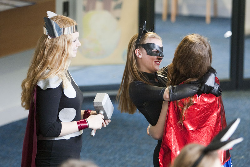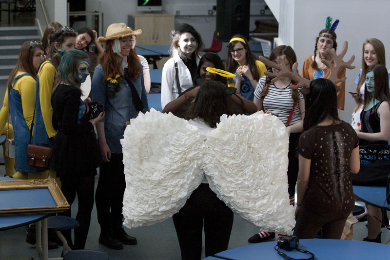 Arriving just before morning break allowed the rest of the school to gather around and marvel at the fantastic costumes.