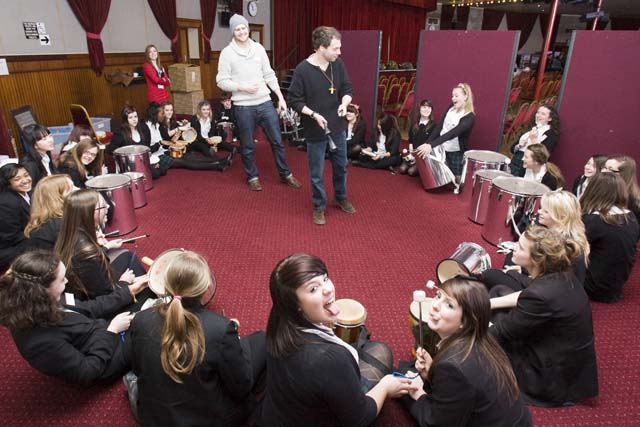 - The Drum and Samba workshop gave our group the chance to shine as they took their previous percussion experience in music lessons and raced through new skills to fill the Queens Hall with original and well timed rhythms.