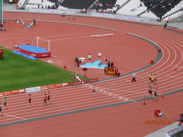 It was finally time to go in. The stadium was huge and, of course, looked really modern. Our session was from 13:30 to 16:45, so we had 3 hours and 15 minutes to watch some really good competitive and entertaining athletics including various field events. The stadium was around a quarter full but the cheering and applause was still excellent for the number there. There was much enthusiasm for the young athletes taking part and although it rained half way through the session it did not affect the competitiveness of the games. We cheered on the South East team and they seemed to be consistently finishing in the top three with some excellent performances. The stadium will be a fantastic venue for our country to host the Olympic Games which commence later on in the summer and the whole regeneration of the area is perfectly planned. It was also interesting to see how the security was being undertaken which seems to be very carefully thought out and carried through to ensure the safety of competitors and spectators alike.