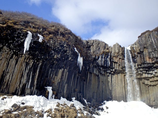 A fantastic Iceland trip again this year and the Northern Lights were kind enough to come out to play on the first night! Lava tubing fun; sledging on top of a glacier which itself was on top of the very active Katla volcano where technique was all important in the need for speed! Giant ice-bergs floating out to sea in gigantic Atlantic waves with seals playing amongst the 'bergs; walking behind waterfalls; ice-walking on glacial snouts; the biggest waterfall in Europe; 'ice candles' hanging from the black cliff gorge that inspired Tolkien; meeting the man that seems to know every Hollywood action movie star there is and has even skied the opening sequence to a James Bond film;