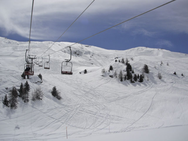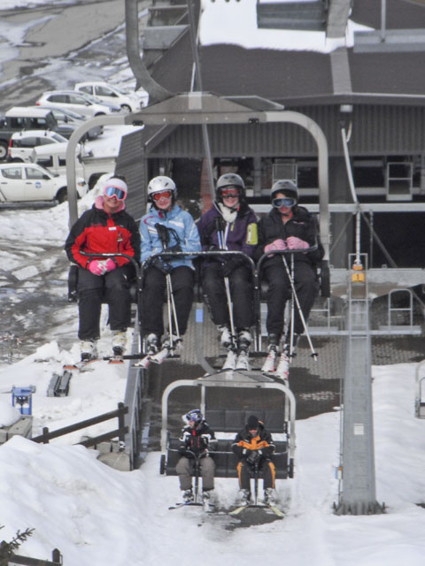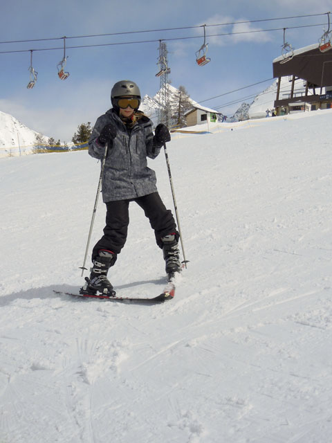 The next day we woke up early at 7:00am which was difficult for everyone. Breakfast was different to what we'd have at home, then we got on the coach and went to the ski hire to get our skis and board the gondolas. The gondola journey took 20 minutes. When we got to the top the snow was surprisingly good considering it was the end of the season, although it was a little cloudy.