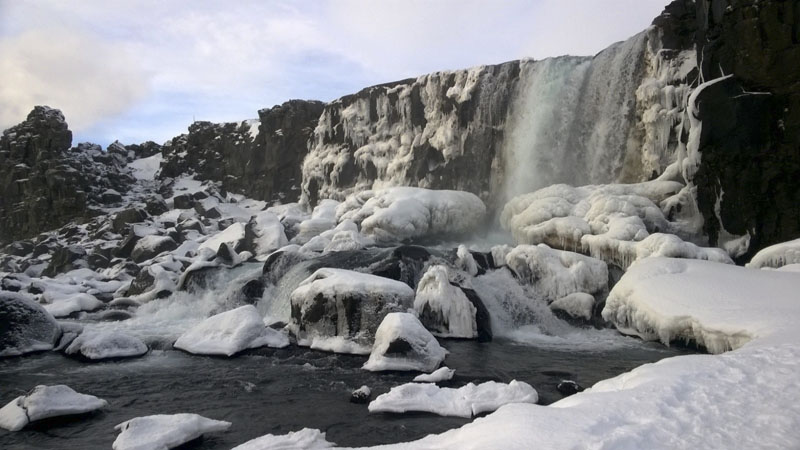 The next stop was one of Iceland's national parks, Thingvellir, where the first ever parliament was formed. This is where the tectonic plates are moving apart! There were some amazing views and waterfalls which I could try and describe to you however they were all just so magical that to experience it you would have to go and see for yourself! As we walked around the huge national park, treading through the snow, everything was glistening in the sun.