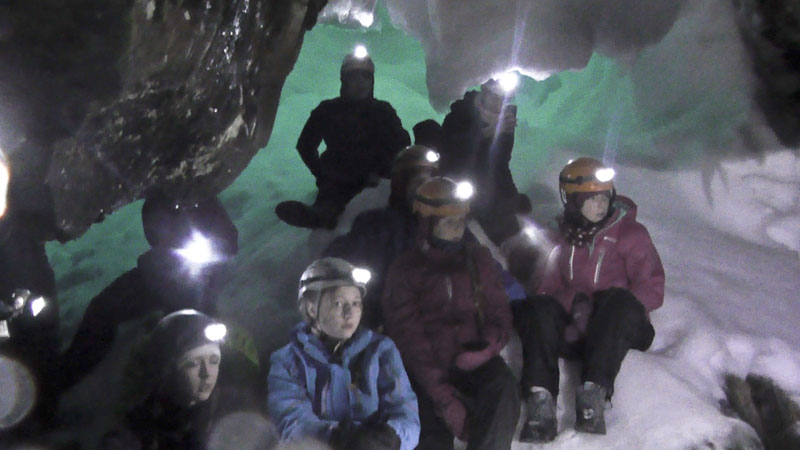 As the Iceland Wanderer turned into a deserted dirt patch on the side of the road a yeep met us, it felt as if we were being taking hostage up a mountain. We bundled in and bounced along up the rocky mountain. We were all swaying about, the journey was hilarious and when we got to the top we were swept up by a snow blizzard that we had to battle through, it was like being in an arctic blizzard, as we neared the top we could see the entrance of the lava tubes. It was amazing to be climbing through tubes where magma had flowed. The tubes were incredible, filled with icicles and pillars of ice.