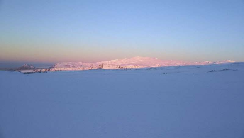 The fourth morning everyone was still buzzing from the northern lights and we had another early start! However, as we were up to early, we were lucky enough to be driven up to the top of a glacier as the sun rise over the tops of the other glaciers around.
